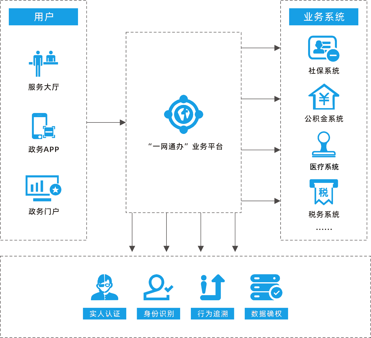 为实现自治区各有关委、办、厅、局自建系统与自治区政务服务平台进行集成,实现网上办事服务入口统一。互认注册用户、实现存量用户数据共享,用户“单点登录、全网通用”,自治区已筹建电子政务服务中心。为保障安全有效地验证用户身份,保障网络环境中的身份有效性及信息安全。